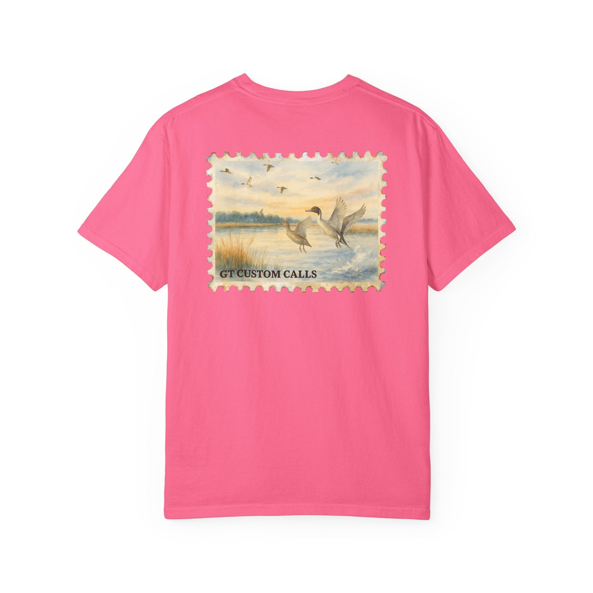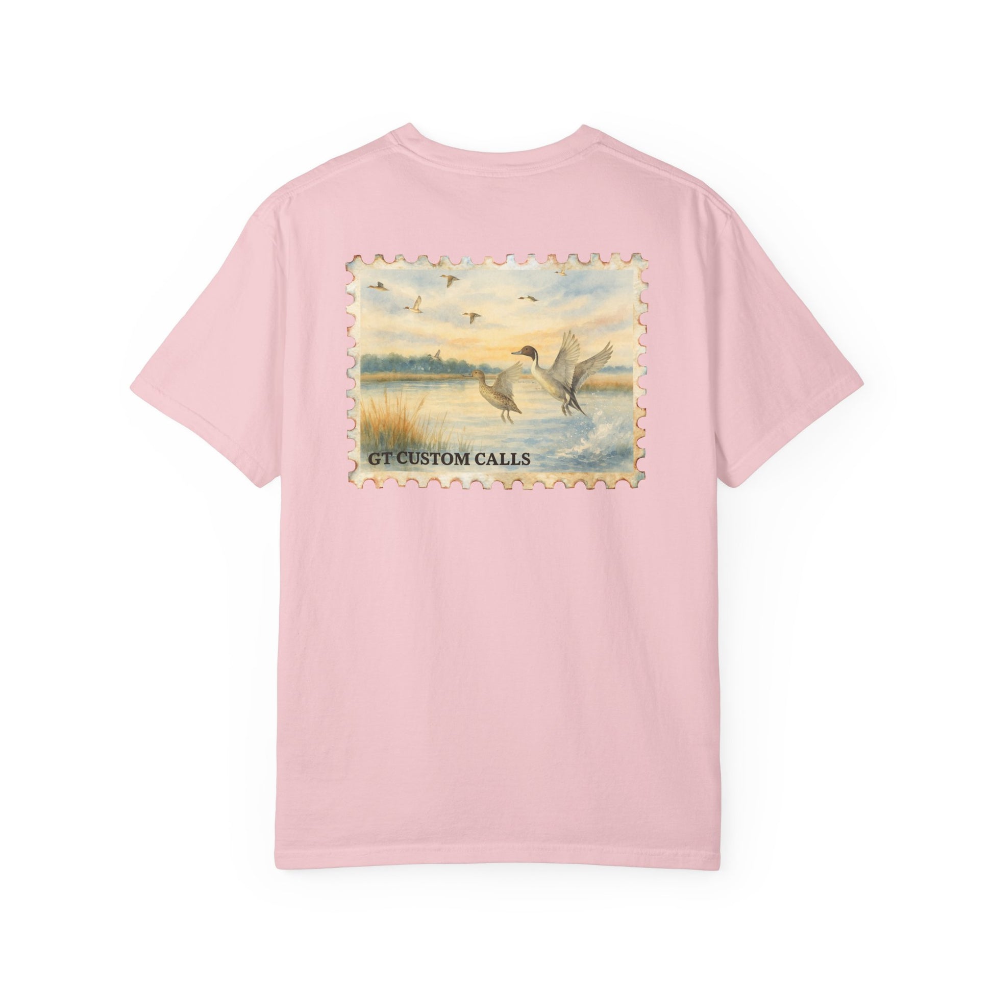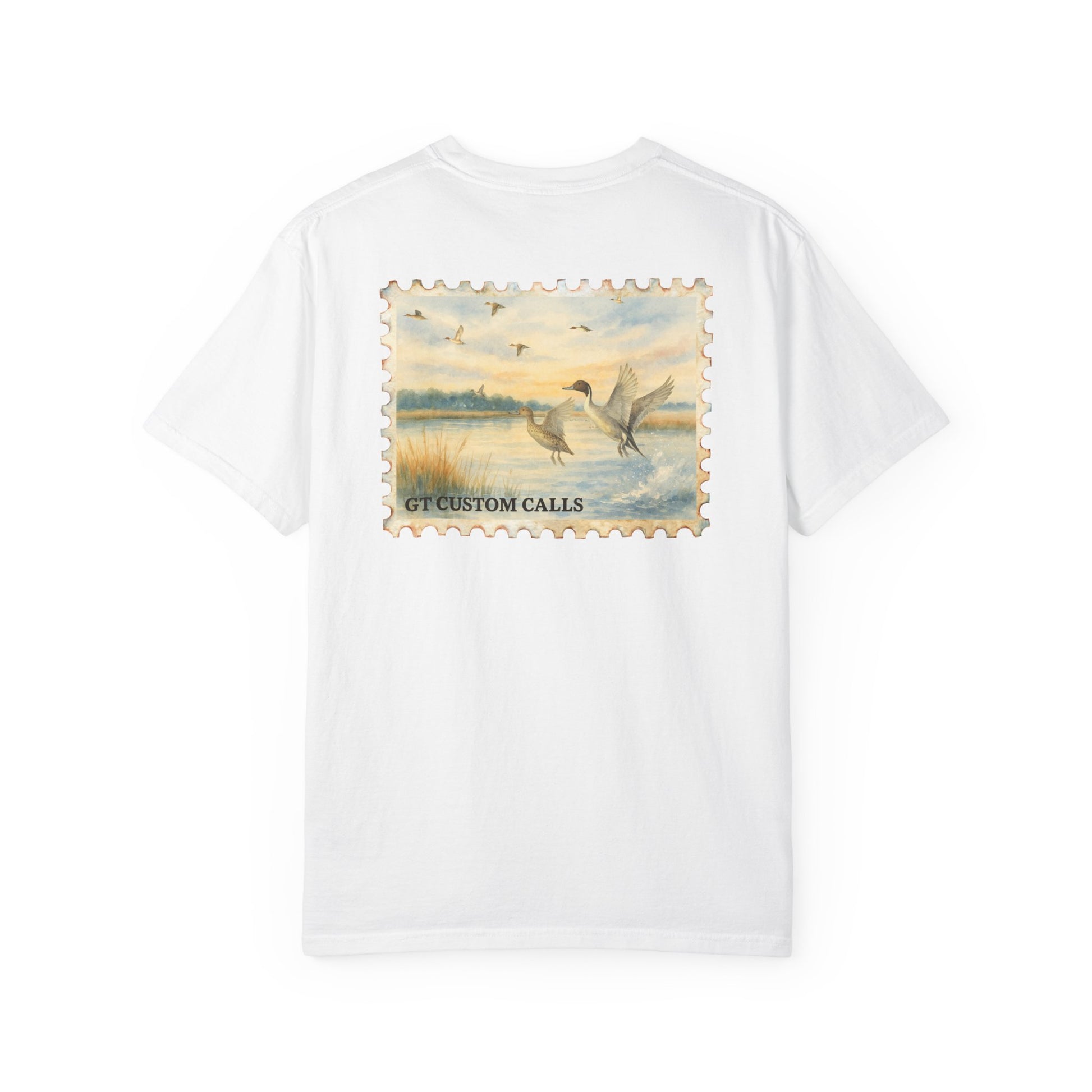 Show your love for the hunt with this classic tee featuring a detailed watercolor-style pintail in flight. Perfect for early mornings in the blind or everyday wear, this shirt combines comfort with a nod to your passion for duck hunting. Clean, simple, and built for hunters who appreciate the beauty of the birds they chase.