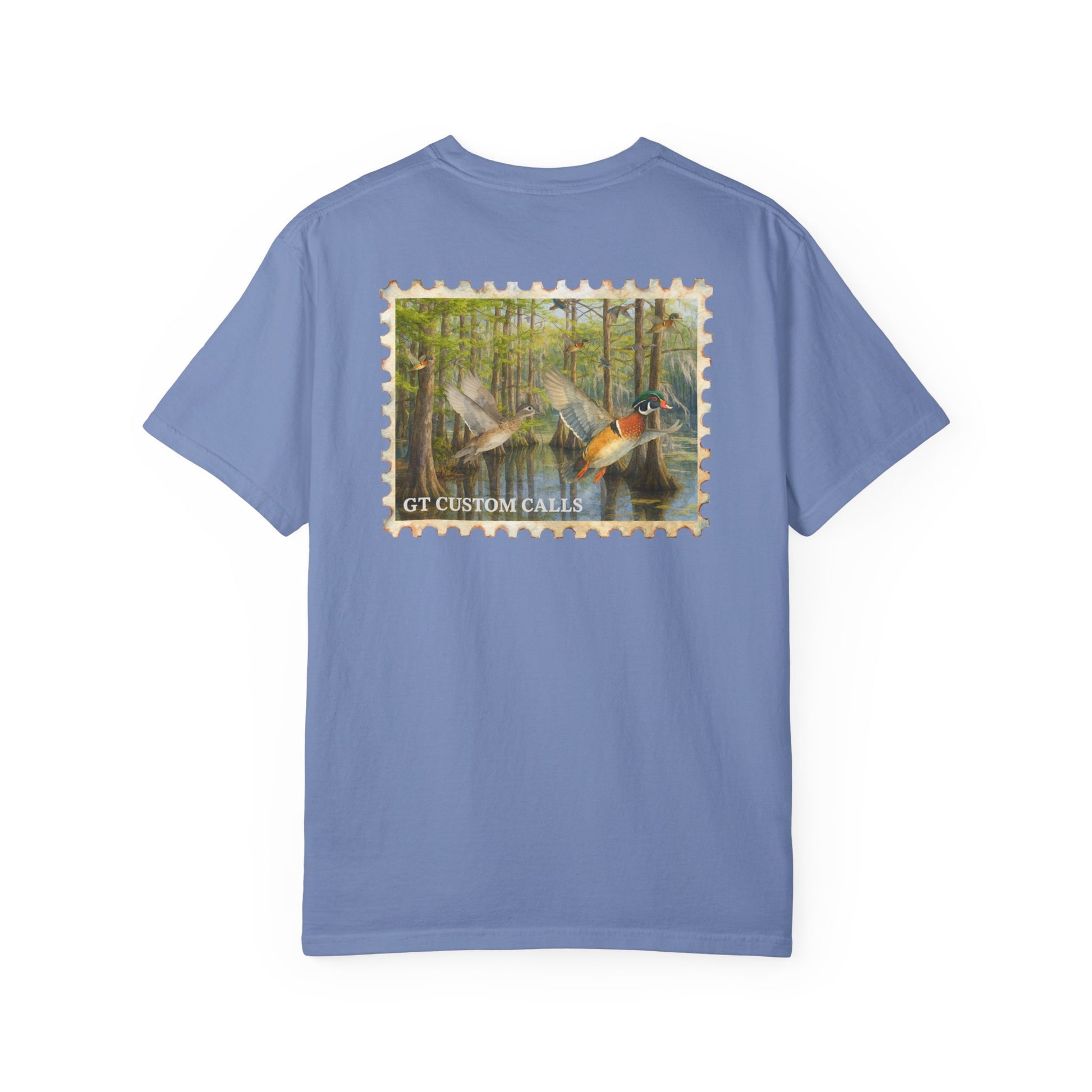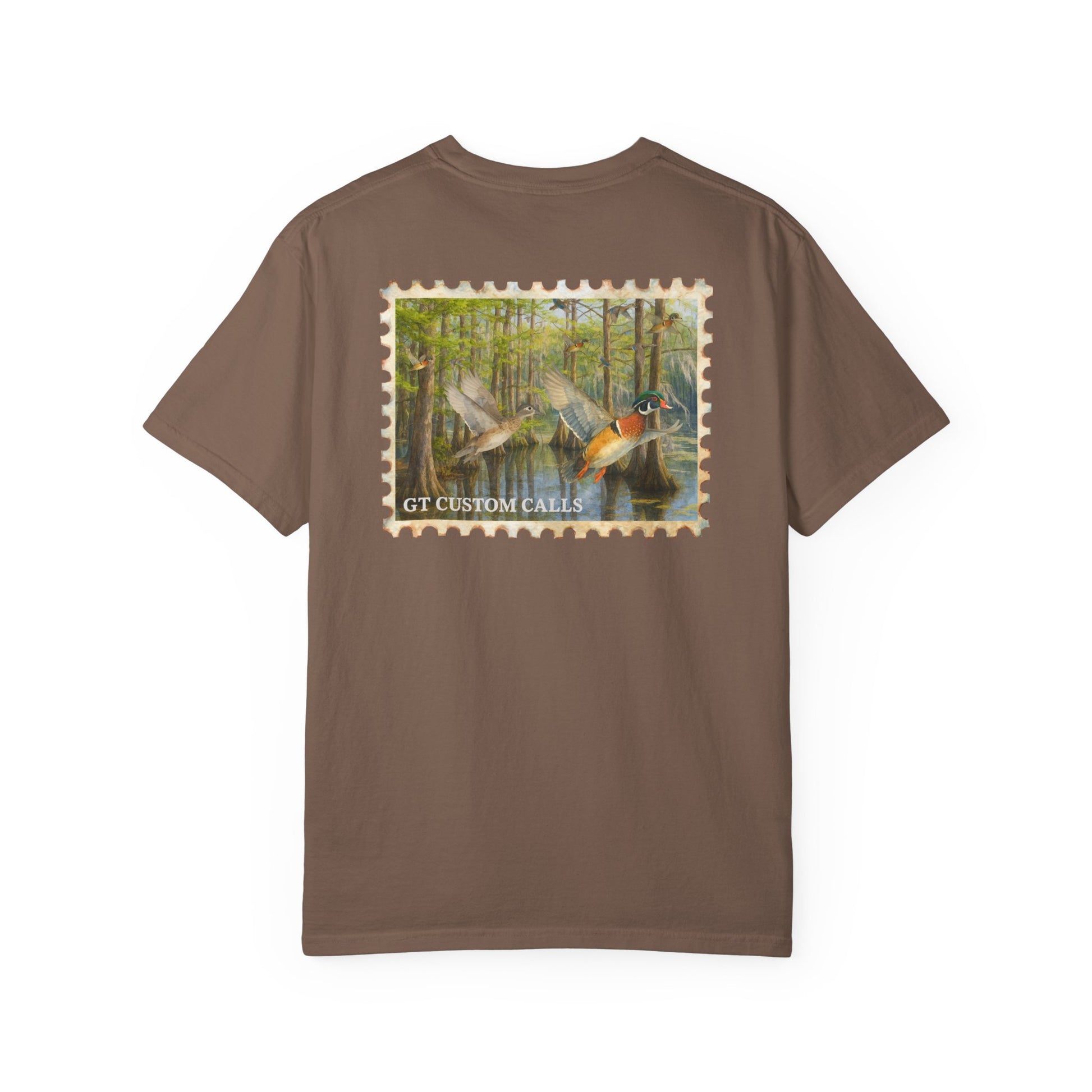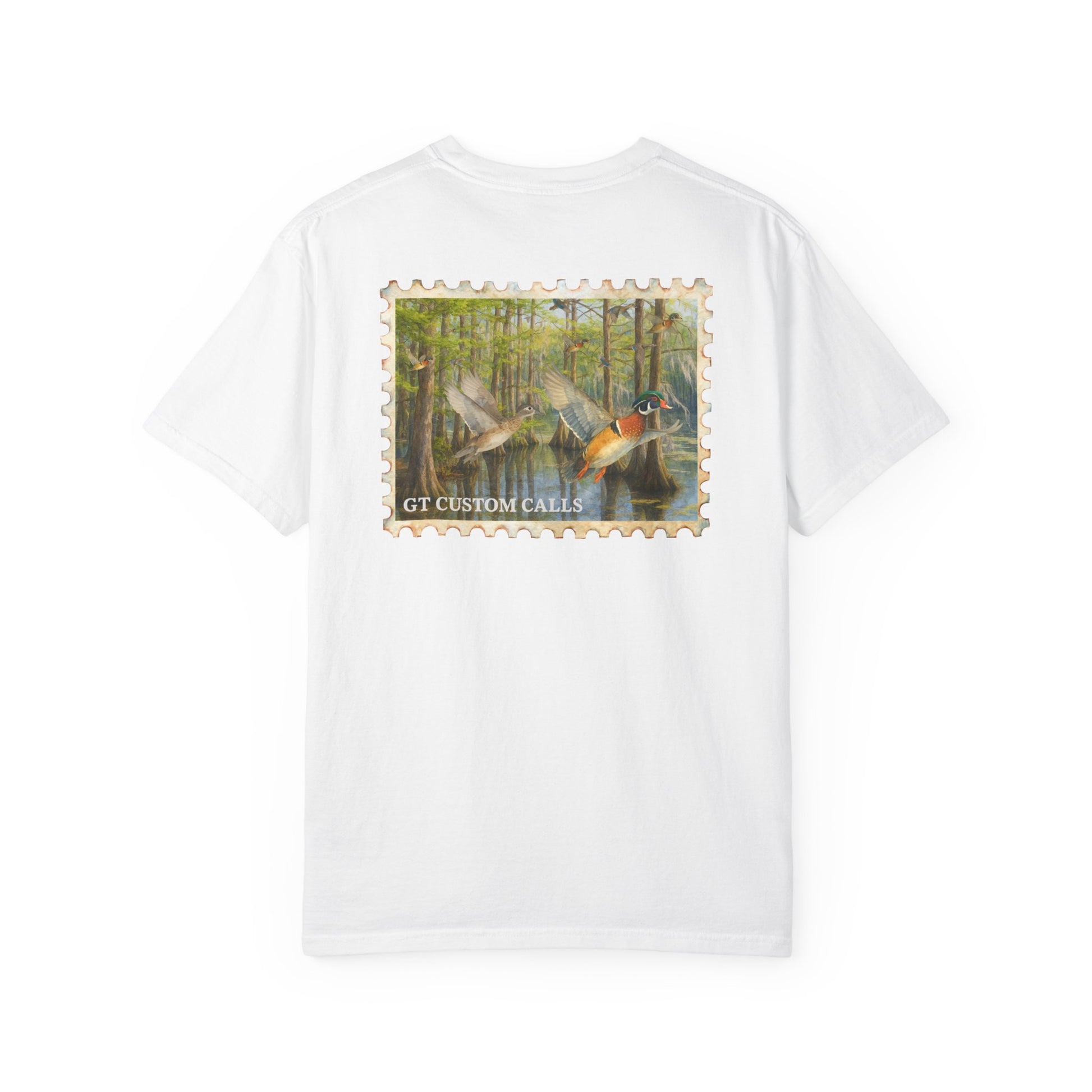 Show your love for the hunt with this classic tee featuring a detailed watercolor-style wood duck in flight. Perfect for early mornings in the blind or everyday wear, this shirt combines comfort with a nod to your passion for duck hunting. Clean, simple, and built for hunters who appreciate the beauty of the birds they chase.